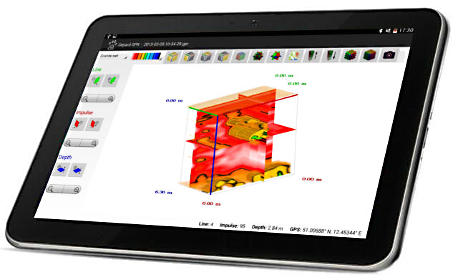 בעזרת תשדורת בלוטוס הטאבלט מקבל את הנתונים מהרדאר ישירות , בעזרת התכנה המגיעה במספר שפות ניתן לנתח את הסריקה ולהגיע להחלטה על הנמצא בקרקע .